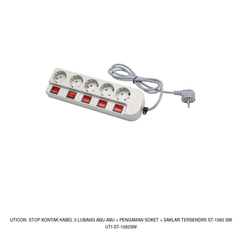Uticon Stop Kontak Kabel 5 Lubang Abu-abu + Pengaman Soket + Saklar tersendiri ST-1582 SW