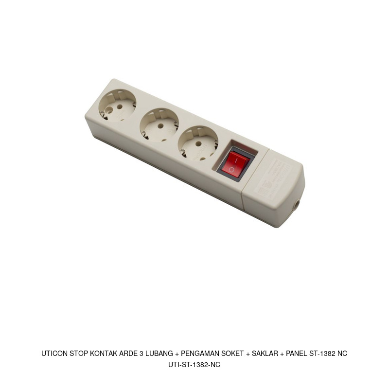 Uticon Stop Kontak Arde 3 Lubang + Pengaman Soket + Saklar + Panel ST-1382 NC