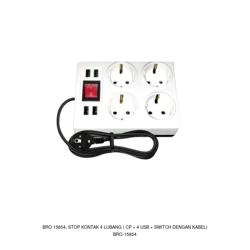 BRO 15854, STOP KONTAK 4 LUBANG ( CP + 4 USB + SWITCH DENGAN KABEL)