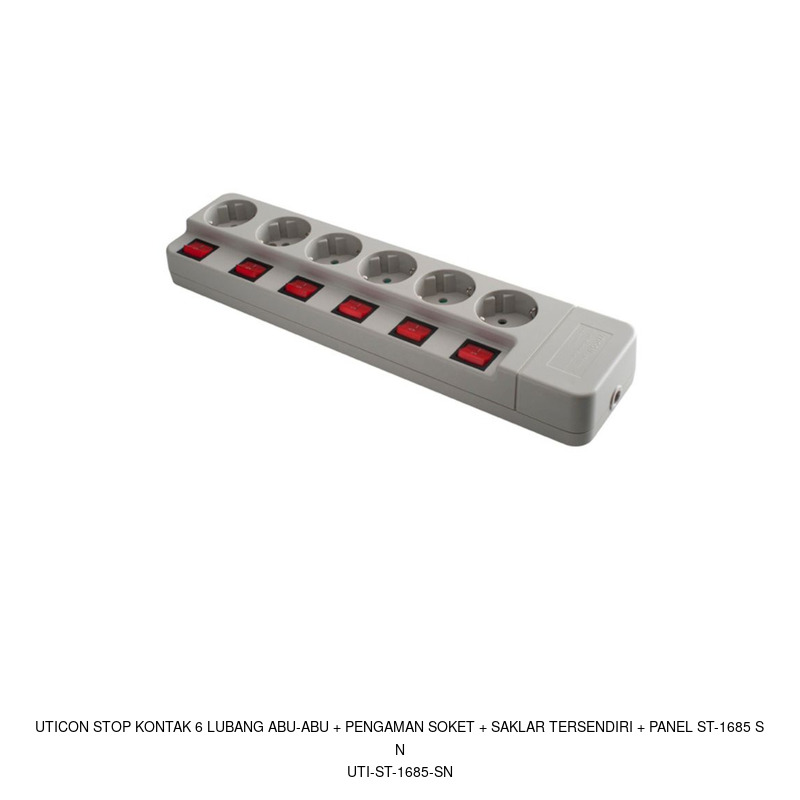 Uticon Stop Kontak 6 Lubang Abu-abu + Pengaman Soket + Saklar tersendiri + Panel ST-1685 SN